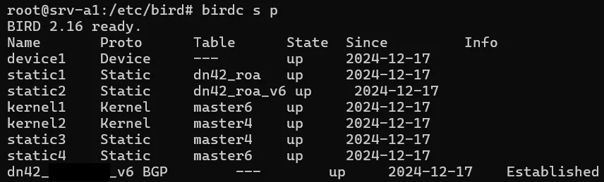 我使用的是 BIRD,配置過程複雜,像是在寫程式,不習慣的人最好還是用 FRRouting 之類的路由程式